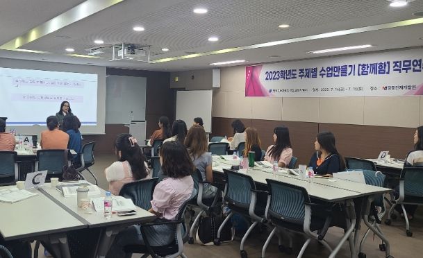 [제주교통복지신문 김강석 기자] 경기도평택교육지원청은 유·초 교사 대상‘주제별 수업 만들기 '함께함'연수’를 7월 12일부터 7월 15일에 실시했다. 연수에는 초등교사 30명과 유·초이음교육과정연구회 회원 유치원 교사 10명 등 유·초 교사 총 약 40여 명이 참석했다. 7월 12일과 13일은 원격연수(4시간)로 2022개정교육과정과 온작품읽기를, 7월 14일과 15일은 경동인재개발원에서 1박 2일 집합연수(11시간)로 진행됐다.