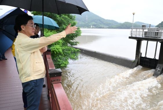 이 시장은 관련 부서장들과 함께 그간 내린 비의 저수량 확인을 위해 반월저수지 현장점검을 시작으로, 지반침하 우려 지역인 용담로 급경사지(절개지 경사도 63도)와 지난해 집중호우로 침수됐던 반월천 제수문까지 꼼꼼히 확인했다. 이 과정에서 만일의 사태에 대비해 발생할 수 있는 모든 위험 요소를 면밀히 살폈다.