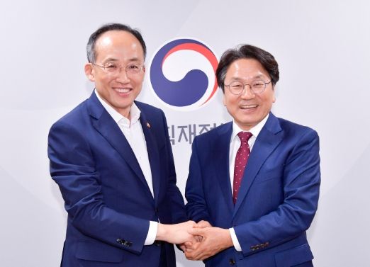 강 시장과 김광진 문화경제부시장, 배일권 기획조정실장은 이날 오후 정부서울청사에서 추경호 경제부총리와 간담회를 갖고, 2024년도 광주시 주요 현안사업을 설명, 지역 미래 성장동력 확보를 위해 정부의 지원이 절실한 상황임을 피력했다.