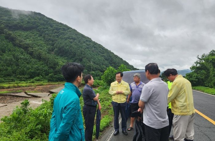 유 군수는 “필요한 인력과 장비를 동원해 빠른 복구 작업에 최선을 다하고 있다”며, “비 예보가 계속 이어지고 있는 만큼 긴장을 늦추지 않고, 상황을 예의주시 하겠다”고 말했다.