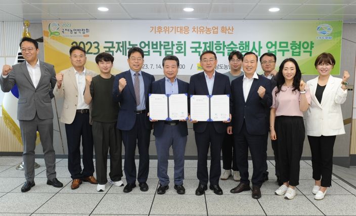 [제주교통복지신문 김강석 기자] (재)전라남도국제농업박람회 사무국은 (사)1.5도씨 포럼과 기후위기에 대응해 지속가능한 농업을 모색하기 위한 2023 국제농업박람회 국제심포지엄 유치 업무협약을 했다고 밝혔다.