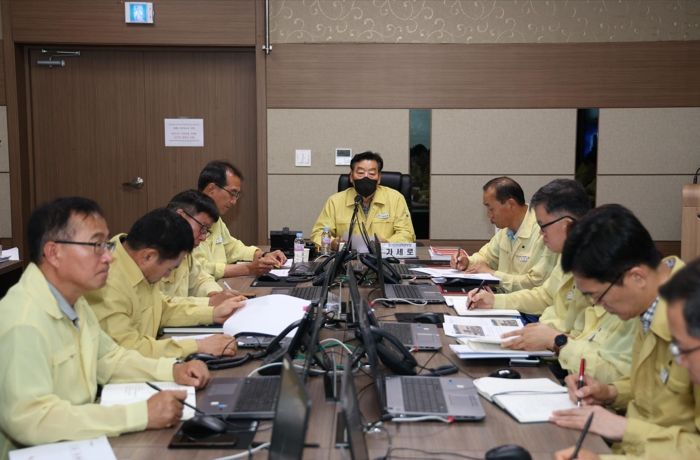 군은 토요일인 15일 오전 9시 군청 재난상황실에서 가세로 군수와 부서장, 재난안전대책본부 근무자 등 30여 명이 참석한 가운데 ‘집중호우 대비 부서장 긴급회의’를 갖고 피해 예방대책을 논의했다.