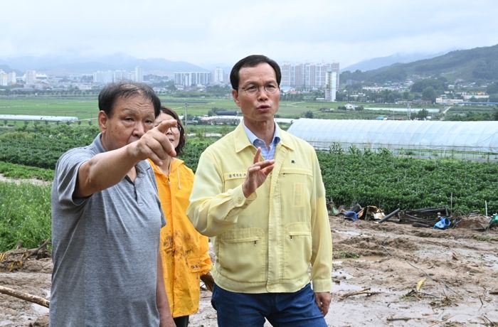 조 군수는 원남면 문암3리 산사태 가옥 매몰 현장, 문등 소하천 유실지, 후미교 교각 지반 침하 구역 등을 살피며 추가 피해 예방과 신속한 복구대책 마련을 지시했다.