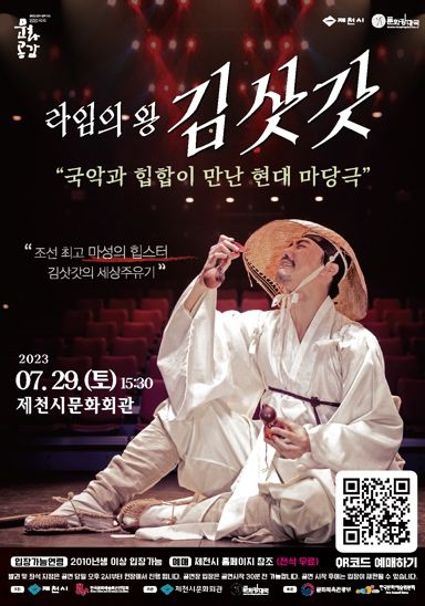 [제주교통복지신문 김강석 기자] 제천시는 오는 29일 토요일 오후 3시 30분 제천시문화회관에서 국악과 힙합이 만난 현대 마당극 '라임의 왕 김삿갓'을 선보인다.