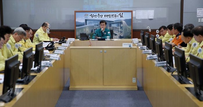 김 지사는 15일 오전 도청 재난안전상황실에서 15개 시장·군수와 실국장 등이 참석한 가운데, ‘호우 대처상황 긴급 점검 회의(국지망 영상회의)’를 열고, 기상 현황 및 피해 대처상황 등을 보고 받았다.