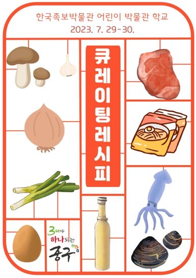 [제주교통복지신문 김강석 기자] 대전 중구는 여름방학을 맞이해 오는 29일과 30일 이틀에 걸쳐 뿌리공원 내 한국족보박물관에서 어린이 교육 프로그램 ‘큐레이팅 레시피(Curating Recipe)’를 운영한다고 밝혔다.