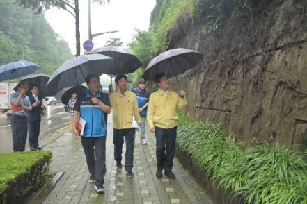 이후 옹벽을 확인하며 배수가 잘 되는지, 토사 붕괴나 낙석의 위험이 있는지 꼼꼼히 살폈다.