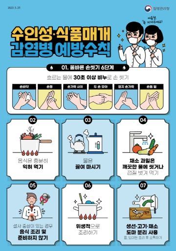 수인성 식품매개 감염병을 예방하려면 비누로 30초 이상 손 씻기 등 개인위생을 준수해야 한다. 예방수칙을 지역행사, 축제에 방문하는 지역주민과 관광객 대상으로 홍보하며 아울러 현수막 게첨 및 지역밴드를 통하여 집중홍보를 할 계획이다.