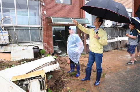 조 군수는 수해 현장을 찾아 피해 상황을 살피고 안전 대책과 복구계획을 점검했으며 주민들의 조속한 일상 복귀를 위해 모든 가용 자원을 총동원할 것을 지시했다.