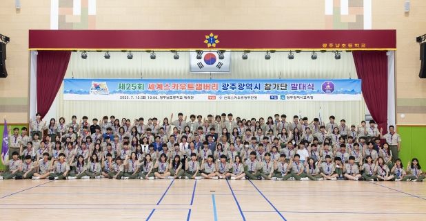 16일 시교육청에 따르면 이번 발대식은 오는 8월1일~8월12일 개최 예정인 ‘제25회 새만금 세계스카우트 잼버리’ 의 한국 대표단 광주 참가자를 위해 이뤄졌다. 발대식에는 이정선 교육감을 비롯한 교육청 간부들과 한국스카우트연명 임직원 등이 참석해 참가자를 격려했다.