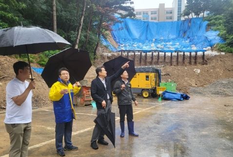 이날 김남일 부시장은 지난해 태풍으로 피해를 입은 대흥중학교 뒤편 산사태 공사 현장을 직접 점검하고, 최근 많은 비로 인해 토사 유출 등 추가 피해가 우려됨에 따라 신속한 조치 및 지속적인 점검을 지시했다.