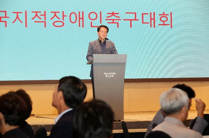 [제주교통복지신문 김강석 기자] 김희현 제주특별자치도 정무부지사는 15일 오후 5시 메종글래드 제주에서 열린 제13회 제주특별자치도지사기 전국지적장애인축구대회 환영연에 참석해 대회 관계자의 노고에 감사를 표하고, 참가선수들에게 응원을 전했다.