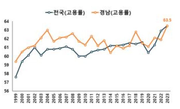 경남 경제지표는 고용지표가 호조세를 지속하며 수출 증가로 무역 흑자를 유지했고 소비자물가 역시 지속적으로 둔화되고 있다.
