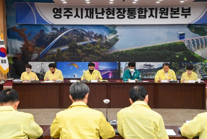 송호준 영주부시장을 본부장으로 재난 현장의 총괄·조정 및 지원을 위해 13개 협업부서장으로 본부를 구성해 상황관리총괄, 시설 응급복구, 재난수습 홍보, 의료·방역 서비스 및 교통 대책, 긴급생활안정지원 등 통합대응체계를 구축 운영한다.