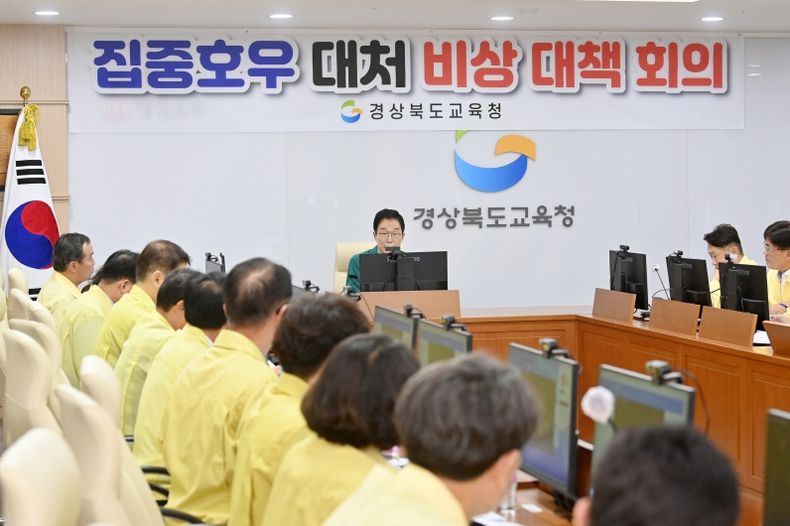 [제주교통복지신문 김강석 기자] 경북교육청은 16일 15시 교육감 주재로 본청 국·과장이 참석한 가운데‘호우 대처 비상 대책회의’를 실시하고, 16시에는 교육지원청교육장을 대상으로 영상 대책회의를 실시했다고 밝혔다.