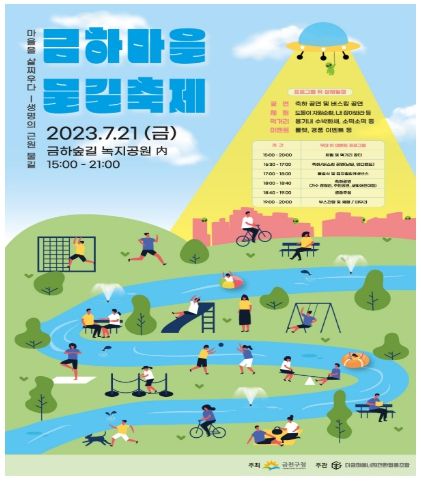 이번 축제는 독산동 금하마을의 상징인 금하숲길(독산동 1094번지 일대)에서 ‘생명의 근원 물길’이라는 주제로 개최한다. 행사는 금천구 도시재생 1호 기업 ‘더금하 에너지전환 협동조합’ 주관으로 진행한다.