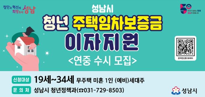 시와 협약한 NH농협은행 성남시지부에 최대 1억원의 전·월세 보증금을 대출받도록 추천하고, 대출이 이뤄지면 해당 이자를 연간 3%(최대 300만원)까지 지원하는 방식이다.