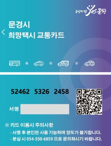 문경시 관계자는 “앞으로 희망택시 이용 시 NFC카드를 꼭 소지하고 탑승하시길 바라며, 대중교통 소외 주민들이 희망택시를 좀 더 공평하고 편리하게 이용할 수 있도록 최선을 다하겠다”고 밝혔다.