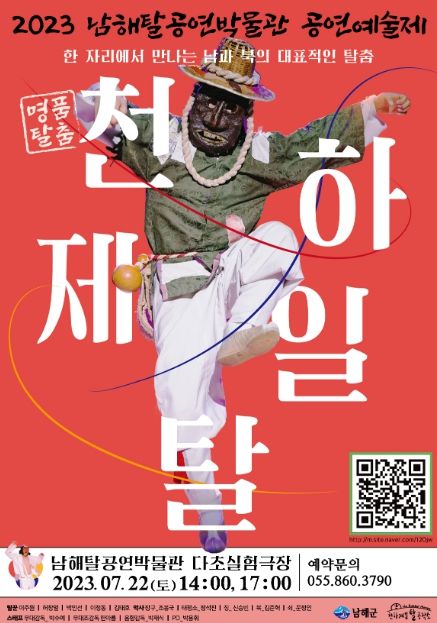 [제주교통복지신문 김강석 기자] 남해군 남해탈공연박물관은 7월 22일 오후 2시와 5시, 천하제일탈공작소의 ‘명품탈춤 '천하제일탈'’을 남해탈공연박물관 다초실험극장(이동면 남해대로 2412)에서 선보인다.