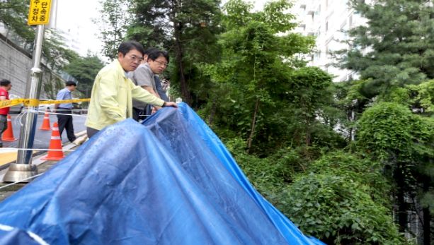 최근 폭우에 흙이 씻겨 나가면서 성동구 아파트에서 산벽자연석이 이탈하는 사고가 연달아 발생해 전문가 자문을 받아 방수포를 설치하는 등 긴급 조치를 완료했다.