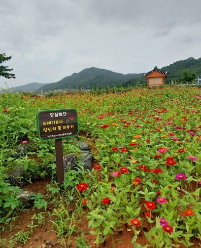 양심화단은 마을 진입로이자 모정이 있는 곳에 위치해 한여름 농사일에 지친 주민들에게 휴식을 제공하고 쓰레기 근절과 아름다운 생활환경 가꾸기에 관심이 높아지고 있다.
