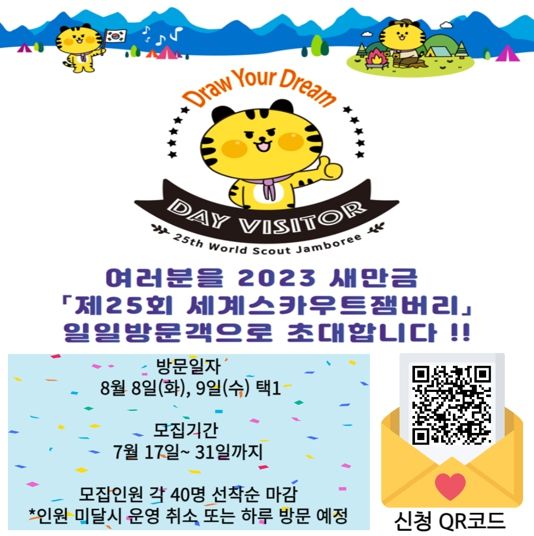 윤여숭 관장은 “여름방학을 맞아 모험 개척 정신을 기르며 성장하고 있는 스카우트 청소년들의 모습을 일일방문단 청소년들이 직접 대면하고 체험할 수 있도록 준비하고 있으니 많은 신청바란다”고 말했다.