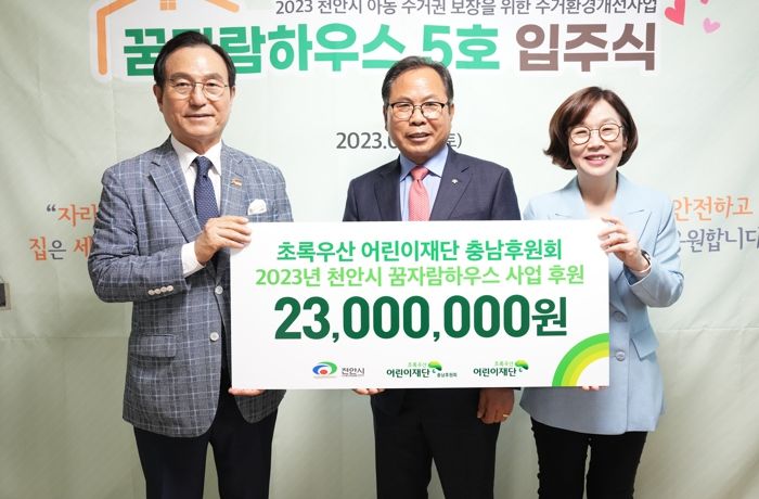 후원금 전달은 지난 15일 성남면에서 개최된 천안시 아동 주거권 보장을 위한 ‘꿈자람하우스 5호’ 입주식에서 진행됐다.