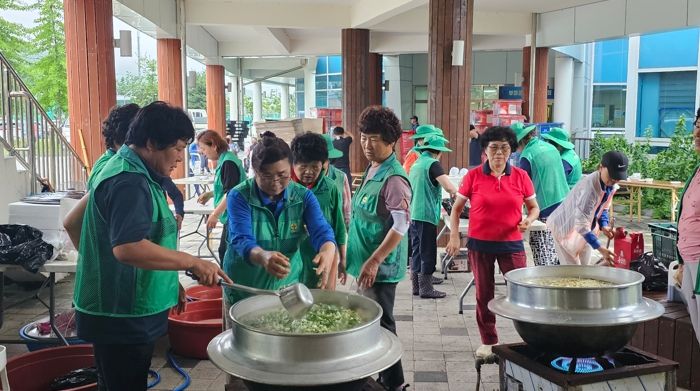 수해로 인해 불안감 속에서 밤을 지새운 이재민들은 이른 새벽부터 새마을부녀회원들이 정성껏 준비한 따뜻한 국과 반찬으로 식사를 한 뒤 “집밥처럼 맛있게 먹을 수 있어 고맙다”는 인사를 건넸다.