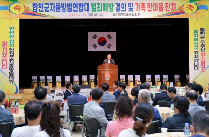 [제주교통복지신문 김강석 기자] 합천군 자율방범대연합회는 지난 14일 합천군문화예술회관에서 박형득 회장 및 자율방범대 회원 300여명이 참석한 가운데 ‘2023년 범죄예방 결의 및 한마음 대회’를 개최했다.