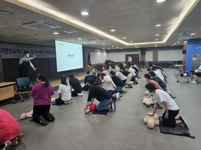 최병의(사단법인 에듀케어) 어린이 안전교육 전문강사가 진행한 이번 교육은 ▲응급처치와 심폐소생술 이론 교육 ▲심폐소생술 및 자동심장충격기 실습 ▲소아에게 발생할 수 있는 응급상황 대응 방법으로 진행됐다.
