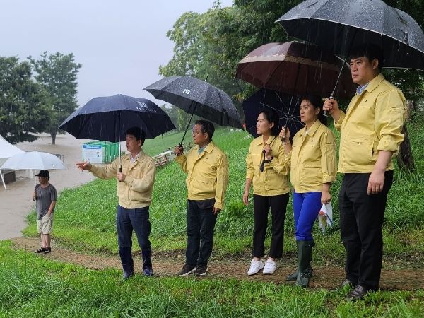 육상래 부의장을 비롯한 중구의회 의원들은 유등천 수해 현장을 찾아가 피해 상황을 확인하고, 관내 상습 침수지역 등의 복구 진행상황 등을 점검하며 대책 마련에 나섰다.