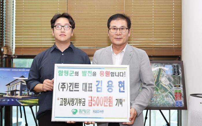 군은 17일 “㈜긴트 김용현 대표, 월천수산 김흥빈 대표가 함평의 발전을 위해 고향사랑기부금 최고 한도액인 500만원씩 기탁했다”고 밝혔다.