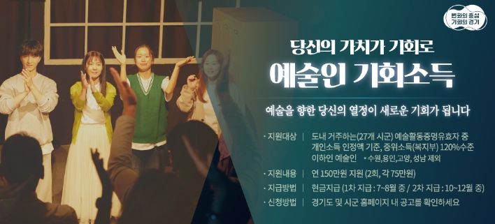 ‘예술인 기회소득’ 사업은 사회적 가치를 창출하지만 시장에서 정당한 보상을 받지 못하는 일정 소득 수준 이하의 예술인들에게 창작활동을 위한 마중물로써 ‘기회소득’을 지급해 예술인들의 창작활동을 촉진하고자 마련됐다.