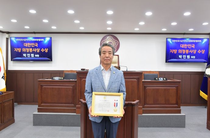 [제주교통복지신문 김강석 기자] 동두천시의회 박인범 의원(더불어민주당, 나 선거구)이 14일 대한민국시군자치구의회의장협의회에서 수여하는 “대한민국 지방의정봉사상”을 수상했다.