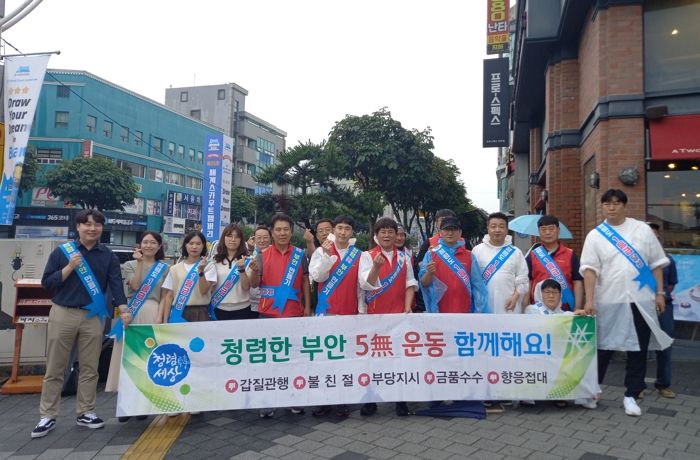 이날 청렴 캠페인은 부안 5無운동(갑질관행, 불친절, 부당지시, 금품수수, 향응접대)을 홍보하고, 지속적인 실현방안에 대한 의견을 나누며 진행됐다. 이번 활동으로 부안군은 공공분야 갑질 및 불공정 관행 등을 바로잡고, 청렴한 공직문화 조성을 위해 반부패·청렴의지를 다짐하는 시간을 가졌다.