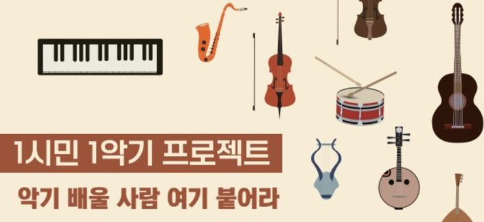 시 관계자는 “시민 모두가 1시민 1악기 프로젝트를 통해 늘 곁에 두고 악기 하나쯤은 연주할 수 있는 반려악기 문화를 선도할 수 있도록 노력하겠다”며 “일상 속에서 문화가 넘칠 수 있도록 생활문화 확산에 기여할 수 있는 프로젝트가 되도록 힘 쏟겠다”라고 말했다.