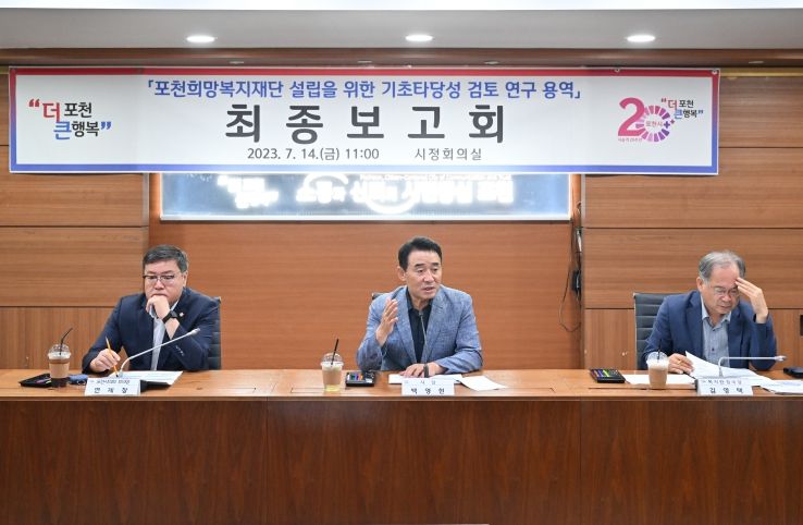 보고회는 지식산업연구원의 용역 최종보고, 질의응답 및 의견수렴 순서로 진행됐으며 포천 희망복지재단 설립의 타당성에 대해 분석하고 설명했다.