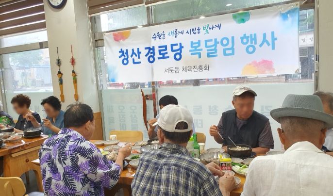 [제주교통복지신문 김강석 기자] 권선구 서둔동 체육진흥회는 지난 13일 청산경로당 어르신들을 모시고 복달임 행사를 진행했다.