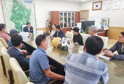 지난 7월 14일 마천면 주민들이 주축이 된 함양 지리산 케이블카 유치위원회 임원들이 언론보도와 관련해 함양군수실을 항의 방문했다.