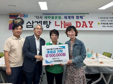 이날 전달받은 후원금은 주례2동 새마을부녀회가 주관하는 홀로 어르신들을 위한‘건강한 여름나기! 삼계탕 나눔 DAY’행사에 사용됐다.