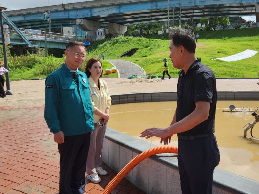 김재욱 군수는 17일 이른 아침부터 피해 현장을 직접 둘러보며 수해현장에 대한 작업지시 및 작업자들의 안전유의 당부와 함께 빠른 시일 내 복구를 완료하여 군민들이 불편함 없이 시설물을 이용 할 수 있도록 총력을 기우려 달라고 당부했다.