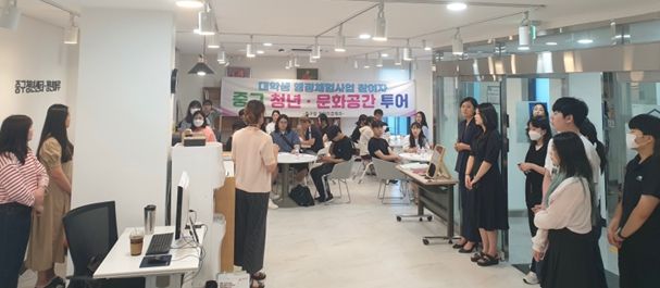 이들은 먼저 2021년 10월 개관한 중구 청년센터를 방문하여 퍼스널컬러 특강 등의 프로그램을 체험한 뒤, 중구문화원으로 향하여 진행 중인 전시 금속제3그룹 정기전 '부산행'을 관람하며 둘러본 후 지난 6월에 개관한 중구 국제화센터를 마지막으로 견학했다.