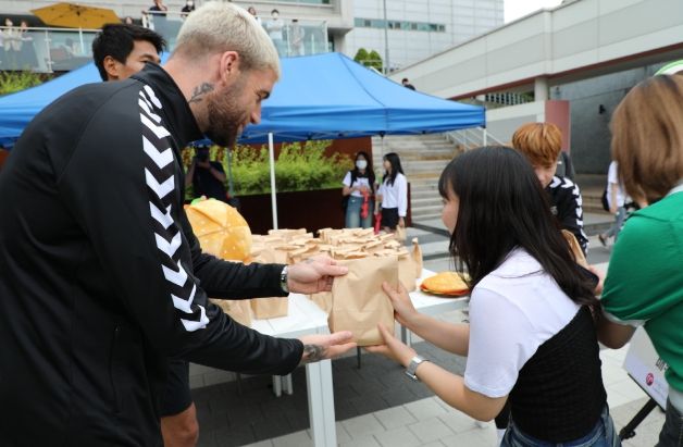 수원시자원봉사센터와 수원FC, 수원FC위민의 협업은 지난달 8일 기말고사 중인 수원 아주대학교 학생들을 대상으로 한 ‘사랑의 밥차’에 이어 올해 들어 2번째다.