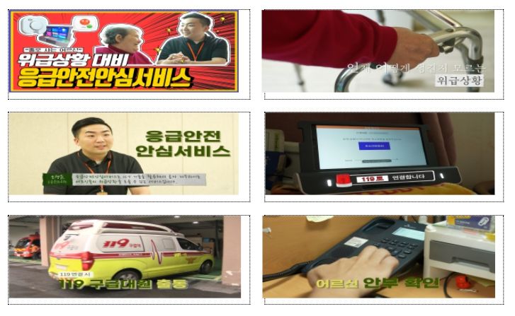 본 서비스는 노인 및 장애인 가정 내 정보통신기술(ICT) 기반의 장비(화재감지기, 활동량 감지기, 응급호출기 등)를 설치해 실시간·비대면으로 응급상황을 119 및 응급관리요원에 알려 구급·구조를 지원하는 사업이다. 화재 시 119에 자동으로 신고하며, 활동량을 감지해 쓰러짐 등이 의심되는 상황은 응급관리요원이 확인해 안부를 살피며, 급박한 경우 노인 및 장애인 가정 내 설치된 응급호출기의 응급버튼을 눌러 119에 신고가 가능하도록 서비스가 제공된다.