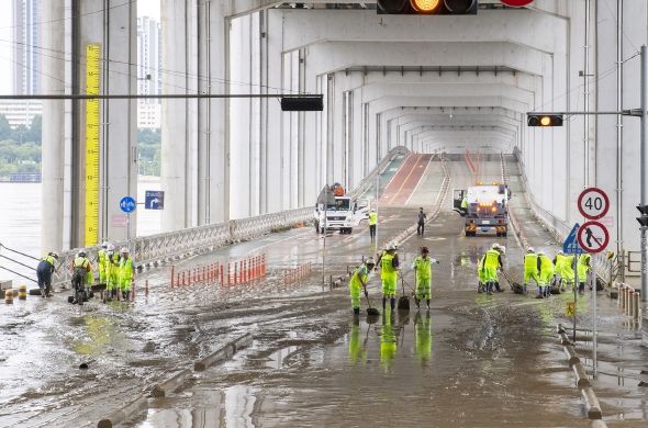 [제주교통복지신문 김강석 기자] 서울 용산구가 17일 낮 1시 잠수교 수위가 6.37m로 낮아짐에 따라 낮 1시30분부터 잠수교 재개통을 대비한 청소에 본격 돌입했다.