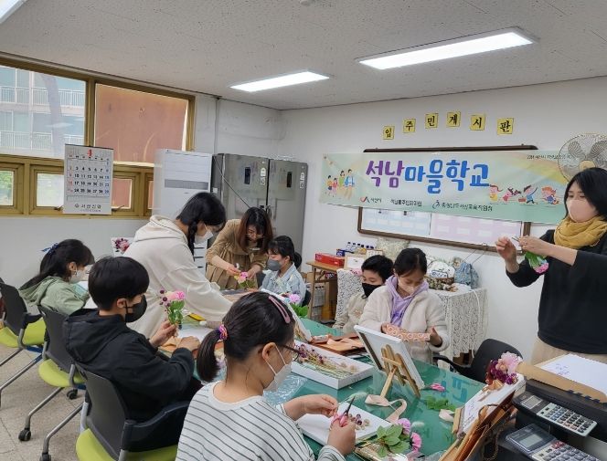지난 4월부터 석남동에 거주 초·중학생 100여 명을 대상으로 ▲ 예쁜소리 악기교실 ▲ 꼼지락 공예교실 ▲ 책사랑 독서교실 ▲ 신나는 전래놀이교실 ▲ 조물조물 도예교실 등 5개 과정을 개설하여 총 48회, 96시간 운영하여 아이들에게 다양한 체험의 기회를 제공하고 있다.