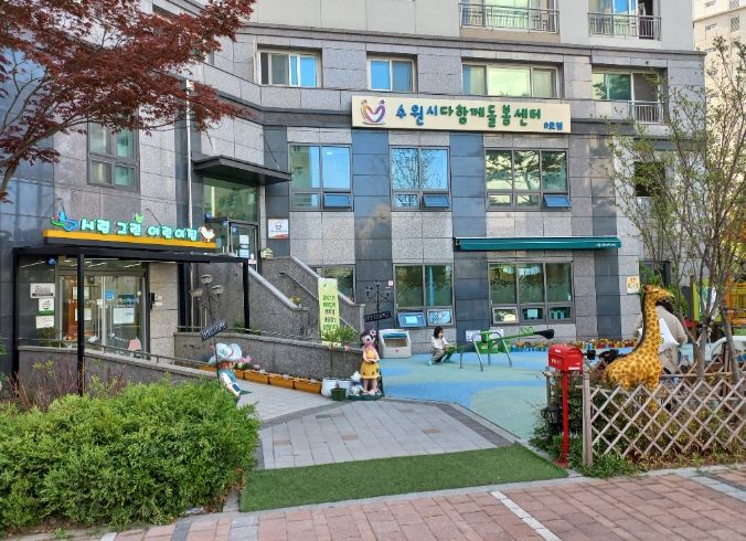 수원시 다함께돌봄센터는 방과 후 돌봄이 필요한 초등학생 아동(만 6~12세)에게 돌봄 서비스를 제공하는 시설이다. ‘학교돌봄터’는 지방자치단체가 학교 공간을 활용해 돌봄 서비스를 제공하는 것이다.