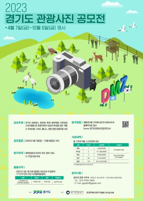 한편, 경기도에서는 경기도 관광자원의 모습과 특성을 담은 작품을 주제로 ‘관광사진 공모전’을 10월 6일까지 진행하고 있다. 내·외국인 모두 참여 가능(1인당 6점 이내)하며 시상금은 총 170개 작품, 2,270만 원 규모다.