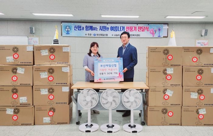 이정재 부산제일신협 이사장은 “무더위에 취약한 홀로 어르신 등 어려운 이웃에게 도움이 되고자 선풍기를 지원하게 됐으며 앞으로도 지속적인 나눔을 실천하도록 노력하겠다”고 말했다.