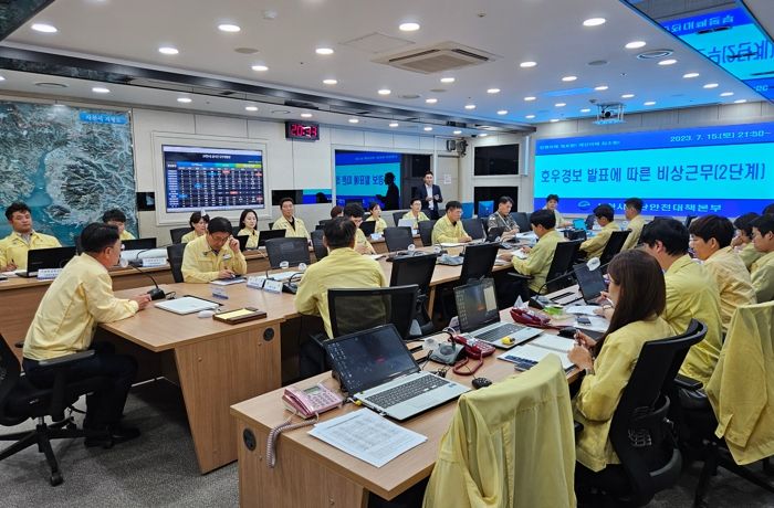이날 박 시장과 이 부시장은 재난안전과장으로부터 집중호우에 대한 실시간 상황 및 피해현황을 보고받고, 비상 근무자들의 근무상태를 확인하고 격려했다.